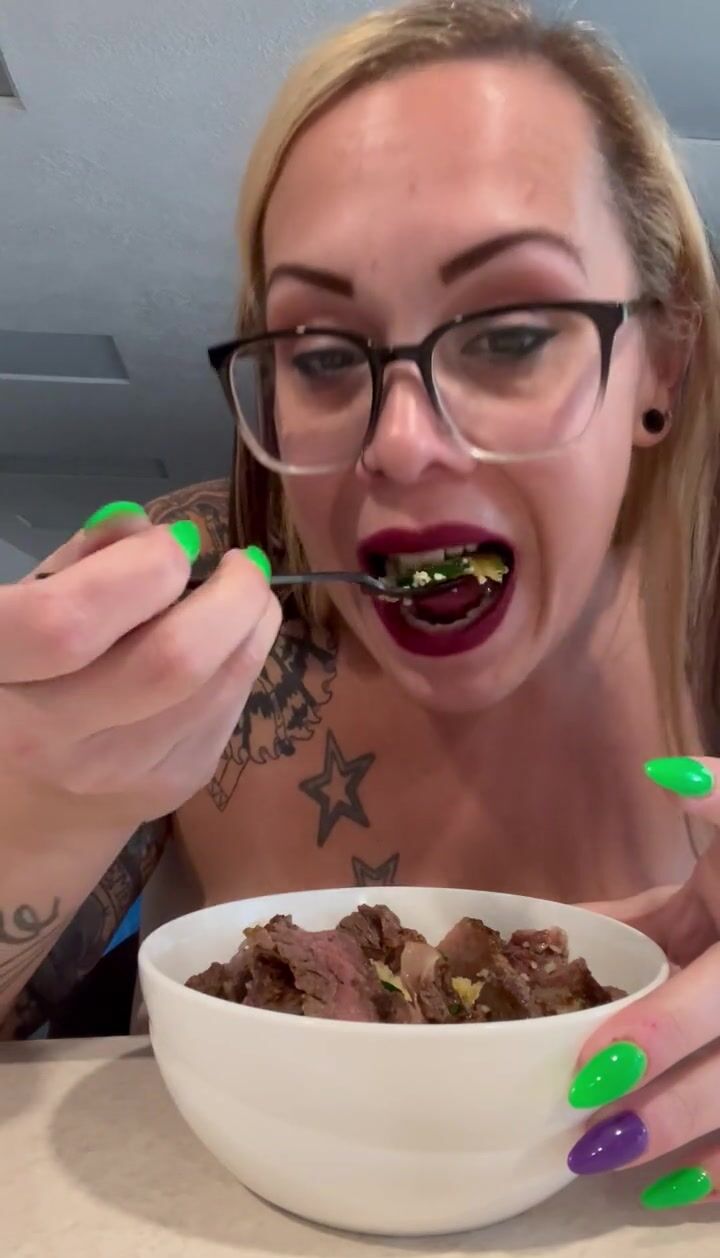 BBW step mom MILF foodie cum eat with me topless